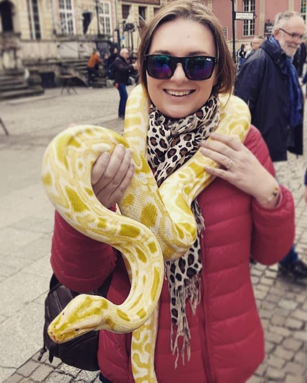 Nie mogłam też nie pojechać do Oliwy (też taksówką za około 30 zł ale można podjechać kolejką SKM) do kociej kawiarni Kotka Cafe. Ale i tak moje serce skradł wąż a konkretnie Pyton Tygrysi, co za słodkie stworzonko.