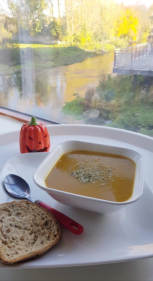Dziś użyłam makera po raz pierwszy bo zakupiwszy dynię na Halloween i wydrążywszy ją, zostałam z papką której żal było wyrzucać. Wrzuciłam ją do urządzenia (najpiew wlewając wodę) dodałam pokrojonego w kawałki butternut squash czyli dynię piżmową która się walała w lodówce, pokrojoną cebulę, trochę czosnku a przyprawiłam solą, pieprzem, cynamonem i startym świeżym imbirem. Wyszła świetna zupa, rozgrzewająca i kremowa! Mam zamiar improwizować w przyszłości łacząc różne warzywa z ciekawymi przyprawami, wszystko wrzucając „na oko” bo co mnie przeraża w przepisach to te odmierzone miary a ja za cholerę nie wiem ile to jest 200 gram czegoś.