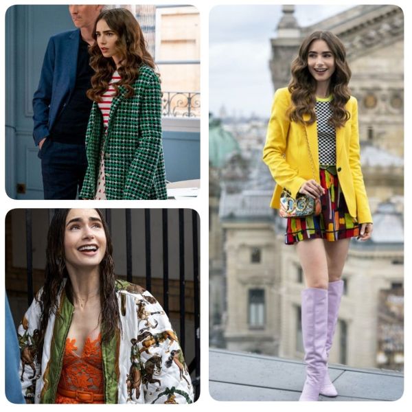 Nie mogę nie wspomnieć o outfitach i ogólnie wyglądzie Emily, bo ponoć są tacy, którzy oglądają ten show dla mody. Serio??? Dawno nie widziałam serialu, w którym bohaterka by się tak kiepsko ubierała (znów z wyjątkiem And Just like That). Emily chyba kupuje swoje kuse spódniczusie i kuse sweterki i bluzeczki w dziale dziecięcym, bo wygląda jak przenoszony bobas lub lolitka. Do tego bohaterka UWIELBIA mieszać wzory, ale w taki sposób, który jest absolutnie bez sensu. Zresztą w sezonie drugim nawet Camille ubiera się koszmarnie. Muszę też zwrócić uwagę na włosy Emily, wyglądające jak peruka. Są bardzo równo rozdzielone pośrodku, bardzo płaskie u góry, a potem idą falami w dół jak na łbie cocker spaniela. Jedynym wytłumaczeniem na to jest fakt, że Emily ze swą kiepską znajomością języka, kupiła sobie szampon dla psów. Nie ironizuję, tak jest w serialu.