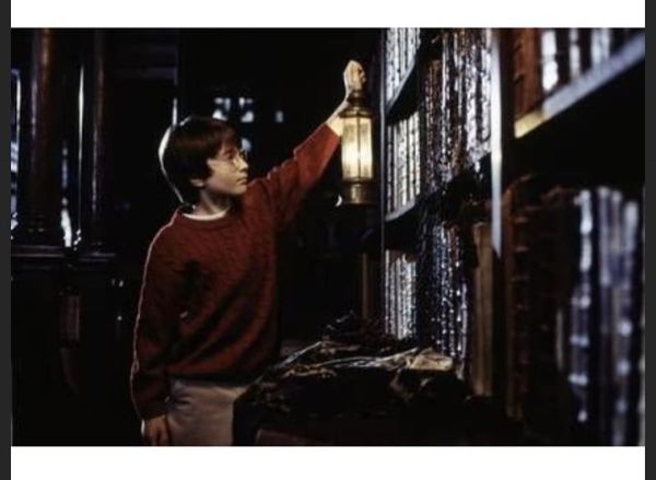 Kiedy weszliśmy do biblioteki, pani przewodnik poprosiła, byśmy na chwilę ściągnęli maski i wciągnęli przecudowny zapach starych książek, połaczony z wonią dębu i czegoś jak wosk. Naprawdę, można by zamknąć oczy i przenieść się do czasów, kiedy księgi były przymocowane do półek łańcuchami, by ich nikt nie ukradł. Przy okazji, scena na poniższym zdjęciu z filmu o Potterze nie jest historycznie akuratna. Książki nie mogły być ułożone grzbietami do patrzącego, bo łancuch był przyczepiony do rogu okładki, nie do grzbietu. Oczywiście sprawiało to trudność, mianowicie nie było wtedy widać tytułu. Pracownicy biblioteki numerowali je, a na brzegu półki przyczepiona była lista numerów i tytułów.