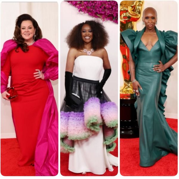 Melissa McCarthy chyba nigdy nie była dobrze ubrana, to coś w gryzących się kolorach leży i wygląda paskudnie. Cynthia Eviro ma na sobie coś, co skomentowano w necie: tak wyglądałaby suknia Scarlett OHary, gdyby jej nie uszyto z zasłony, ale ze skórzanej sofy. Nazwiska pani w środku nie znam, ale ten straszny outfit jest autorstwa Christiana Siriano. Siriano wiele lat temu wygrał Project Runway i zawsze podziwiałam jego kolekcje, ale ostatnio wszystko co robi jest takie, jakby było to zadanie w Project Runway: masz 5 godzin i musisz wykorzystać dostępne w promieniu kilku metrów szmaty.