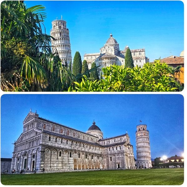 Ponoć Galileusz, spuszczając kule z Krzywej Wieży, pracował nad teorią prawa, rządzącego spadaniem ciał, a obserwując żyrandole w katedrze, dumał nad oscylacją ruchu ziemi. Zarówno wieża, jak i katedra, babtysterium i cmentarz Camposanto (który był niestety zamknięty) tworzą razem kompleks wpisany na listę Unesco. Stoją na pokrytym murawą placu zwanym Placem Cudów (Piazza Di Miracoli) i stanowią przykład architektury zwanej stylem romańskim charakterystycznym dla Pizy. Piza jest raczej płaska, pamiętam, że podczas moich wcześniejszych pobytów w Toskanii, wieża była widoczna z niedalekiej autostrady. Widać ją też doskonale, jak i cały plac, z samolotu podczas startu czy lądowania.