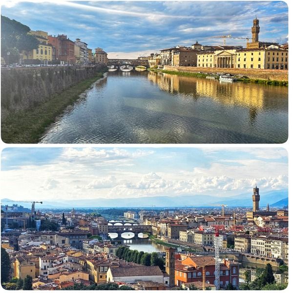 Pojechałam do Florencji, a jakże. Za pierwszym razem miałam mieszane wrażenia i wiem teraz, dlaczego. Tłumy, tłumy, tłumy. Wszędzie się stoi w kolejkach, na wszystko się czeka. No i jeden dzień to zdecydowanie za krótko, bo zanim się ogarnie jedną atrakcję z tymi kolejkami, to godziny mijają. Na pewno jest w tym mieście tona przeróżnych interesujących miejsc i obiektów. Ale w krótkim czasie zdołałam ogarnąć campanile ( katedra była niestety zamknięta), pospacerować w okolicach Ponte Vecchio i wejść na wzgórze po drugiej stronie rzeki, skąd są przepiękne widoki. A potem już uciekałam stamtąd, bo tłumów nie cierpię.
