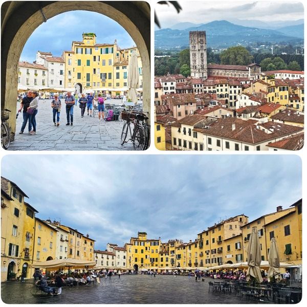 Kolejny cały dzień spędziłam w Lukce. Och Lucca 🙂 jakie to przyjemne miasto. Tam bym nawet mogła mieszkać. Jak wizyta we Florencji mnie zmęczyła, tak Lucca mnie zrelaksowała na maksa. Nie za dużo turystów, tak w sam raz, cicho, spokojnie. Zaczęłam od spaceru po murach, które mają około 4 km w obwodzie. Nie ma opłat jak w Pizie i widać, że to ulubione miejsce mieszkańców do spacerów z psami czy przejażdżek rowerowych. Piękne widoki z obu stron. Z mojego pierwszego pobytu pamiętałam niewiele, tylko ciekawy architektonicznie rynek, na bazie koła.