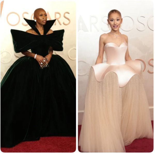 Cynthia Erivo i Ariana Grande – bardzo możliwe, że gdyby nie karnawał w Wenecji, to uznałabym te kreacje za najgorsze 🙂 Ale jestem ciągle w nastroju na kostium, a ponieważ miałam okazję wreszcie założyć i ponosić barokową suknię z przesadnie zaakcentowanymi biodrami, to oba te outfity są dla mnie nowoczesną wersją takich właśnie sukien.